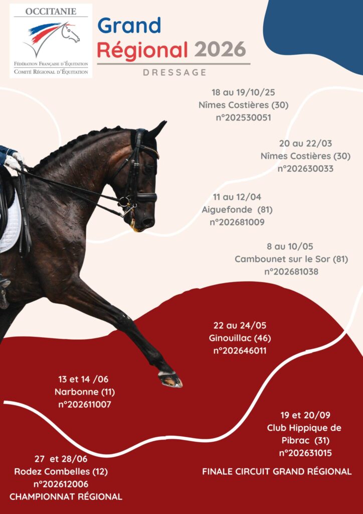Le Circuit GRAND RÉGIONAL DRESSAGE est le circuit officiel du Comité Régional d’Équitation d’Occitanie dédié aux catégories Amateur.